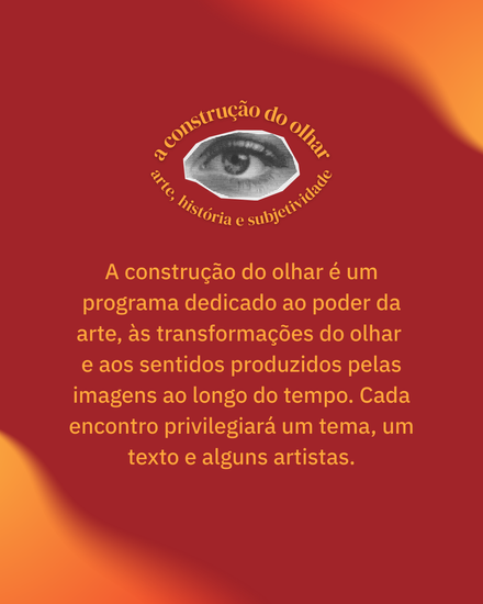 A construção do olhar é um programa dedicado ao poder da arte, às transformações do olhar e aos sentidos produzidos pelas imagens ao longo do tempo. cada encontro privilegiará um tema, um texto e alguns artistas.